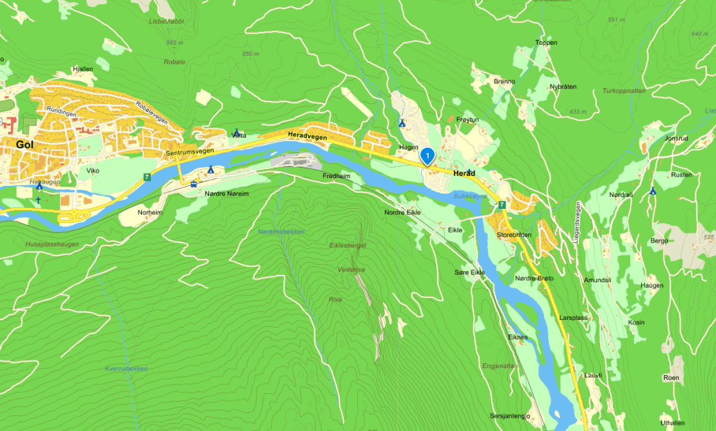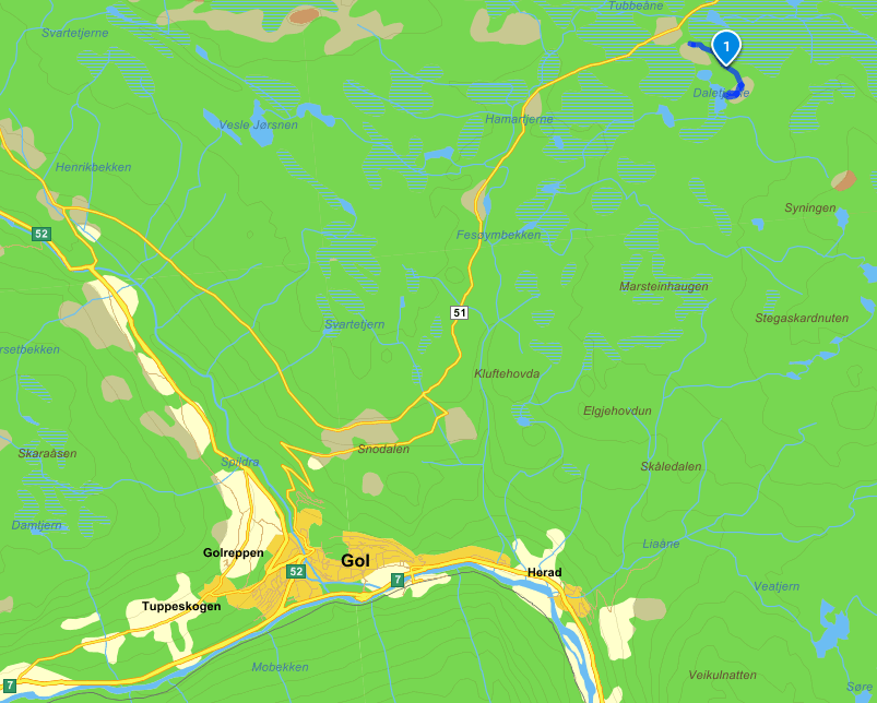 Note there is also a Haugen (Nedre and Ovre Haugen) in Nesbyen municipality just south of Gol municipality. This is probably not the place he lived, but might be connected to his family and is near the location of some of his direct ancestors (who lived in Gunbjørndokk). This area also has a Bråten.