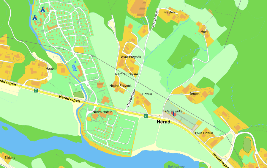 | 5. Hoftun. Udt. hø`fftúnó (kun én opgav -túnadn). ― [Hoff- tum NRJ. IV 577, 1542]. Houfftun 1578. [Hofftun JN. 351]. Hoff- thun 1593. Hafftonn 1604.1/1. 1617. Hafftoren 1657. Hoffthun St. S. 128. Haftorn 1723 (2 Opsiddere). Samme Navn i Suldal. Skrivemaaden Haftorn beror maaske paa folke- etymologisk Tilknytning til Hagtorn: Wiel f. Ex. skriver Trænavnet “Haftorn”; jfr. dog Hagtor for Hafþórr (Lind, Dopnamn S. 443 ff.) og Bd. VI S. 392. *Hoftúnir, af hof n. “Gudetempel” og tún n. “indhegnet Sted, Gaardsplads: Gaarden har visselig oprindelig hørt til Frøyshovet (se GN. 4). Sml. Sigdal GN. 94. Hoftun og Frøisaaker ligger i Grænden Hera (GN. 1-9, udt. hæ`ra), der ved sit Navn (oldn. herað n. “Herred”) angiver sig som den tidligst bebyggede Del af Distriktet. Jfr. om Heradsbygden under “Gamle Bygdenavne” i Norderhov. Hera er ogsaa Navn paa en Bygd i Lister. [English translation] Same name in Suldal. The writing style Haftorn is perhaps due to folk etymological Connection to hawthorn: Wiel f. Ex. writes Tree Name “Haftorn”; cf. however Hagtor for Hafþórr (Lind, Dopnamn S. 443 ff.) and Bd. VI S. 392. *Hoftúnir, af hof n. “God’s temple” and tún n. “fenced place, farmyard: The farm certainly originally belonged to Frøyshovet ( see GN. 4). Sml. Sigdal GN. 94. Hoftun and Frøisaaker are located in Grænden Hera (GN. 1-9, ext. hæ`ra), which by its name (oldn. herað n. “Herred”) indicates itself as the earliest inhabited part of the district. Cf. about Heradsbygden under “Gamle Bygdenavne” in Norderhov. Here is also the name of a village in Lister. |