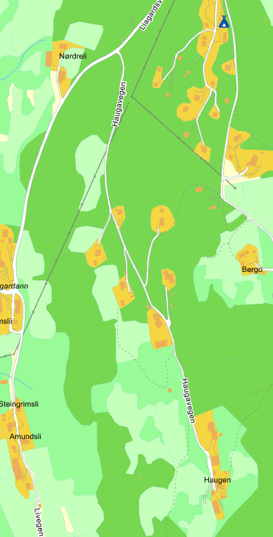 There’s a Haugen closer to Nørdreli, and this is the probable location for his later home (also note the “Liagardsvegen” on the nearby road).