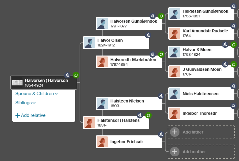 For this reason, this family has no single surname. This account includes the paternal relatives of Selma Halvorsen and avoids detailing all the maternal relatives to limit its scope, but it does include a few more maternal relatives than in other accounts to create a better picture of these ancestors.