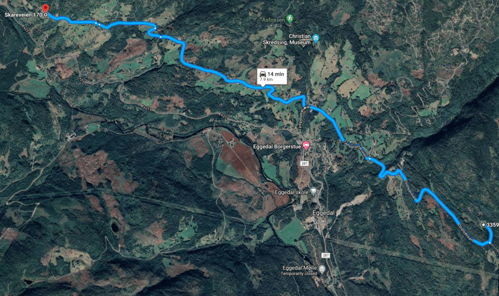 Kvigne’s location in Lærdal is unclear, but it might be the place on the Erdaselvi River (now known as Kvignadal) 6-7 km upland from the Lærdalsfjord, a branch of the Sognefjord.