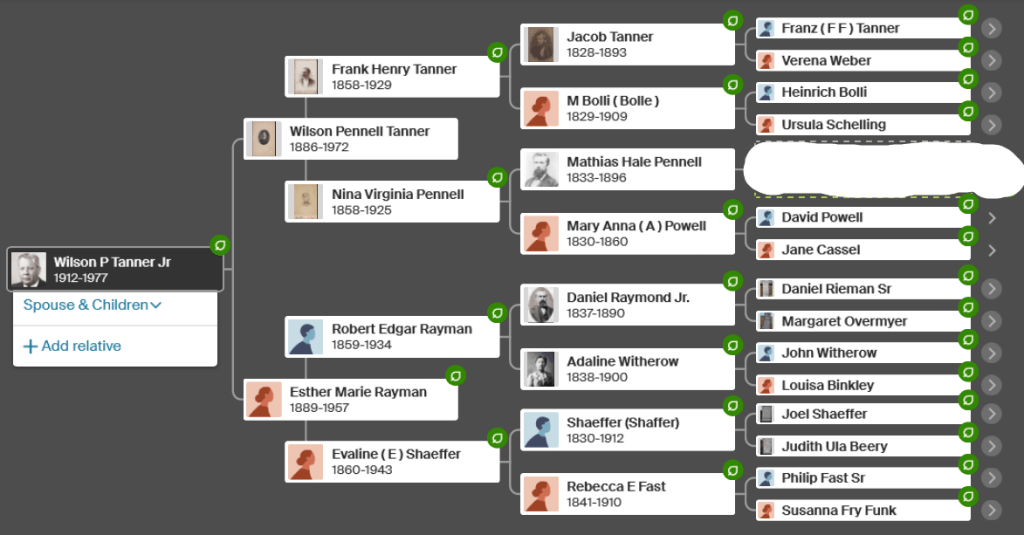 (Ancestry) Family tree of Wilson Pennell Tanner, to four generations