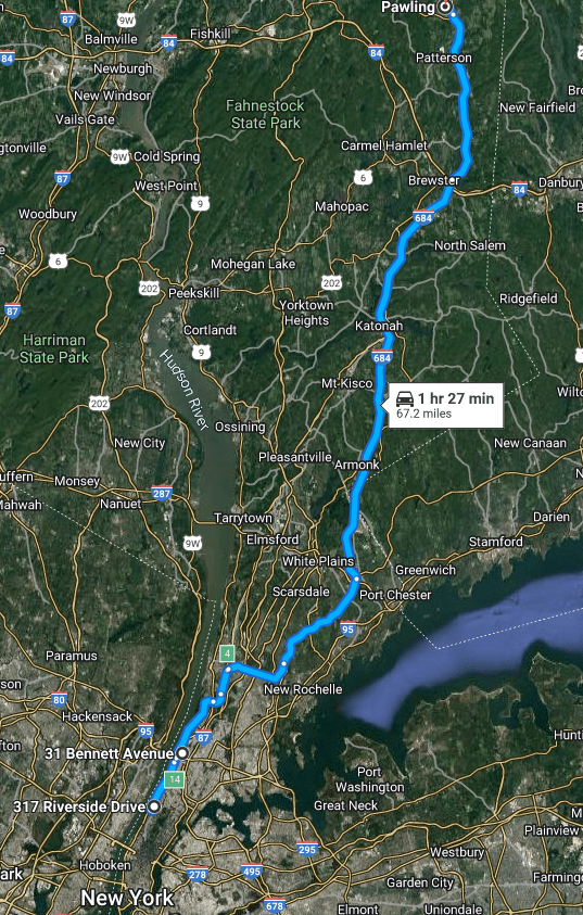 By the time he was in high school (by 1928-1929), they were living in Pawling, New York.