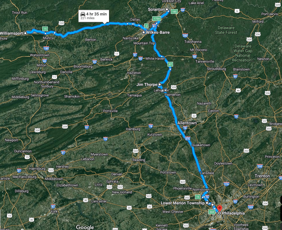 Between 1830 and 1840, the descendants in the line moved to Pennsylvania (including Athens, then Wilkes-Barre, then Mauch Chunk, then Philadelphia, and then Scranton around 1890).