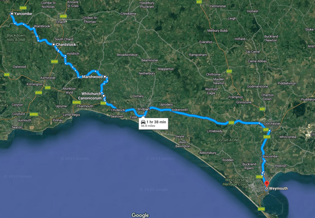 Thomas moved from Yarcombe to Marshwood about 16 miles away about 1626, with his children Mary and John being baptized in nearby Whitchurch Canonicorum.